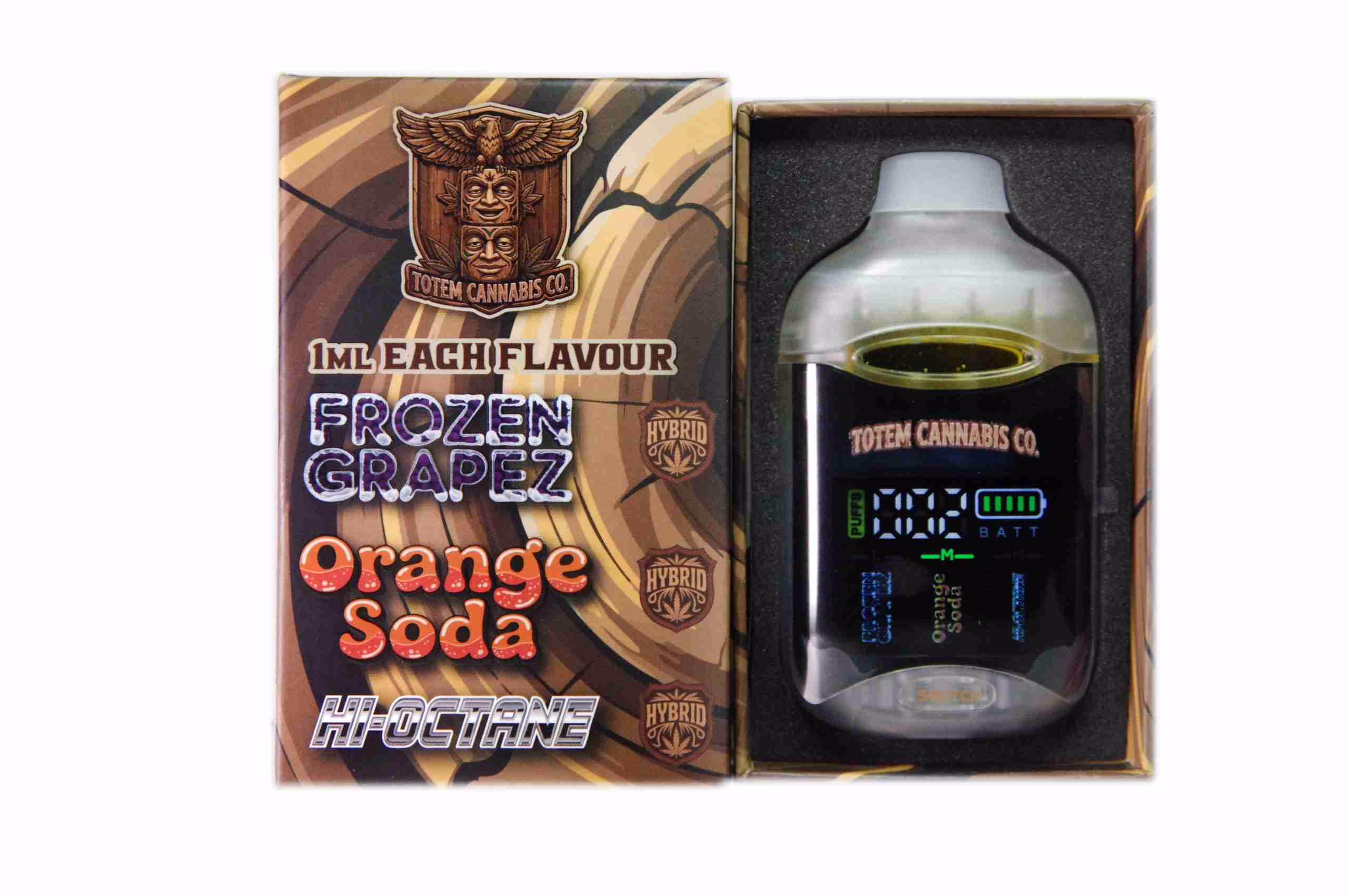 Priced at $60.00, the Totem Cannabis Co. Tri Chamber Vape - Frozen Grapez + Orange Soda + Hi-Octane (3 x 1 Gram) provides excellent value and is suitable for users of all levels.
